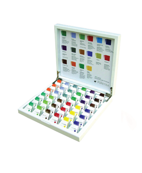 Prachtige witte theekist met 36 gevulde vakken met de 16 verschillende Pure Tea smaken. Pure tea is 100% biologische thee, per theezakje verpakt in een mooi piramidevormig doosje. Elke smaak is apart te verkrijgen.